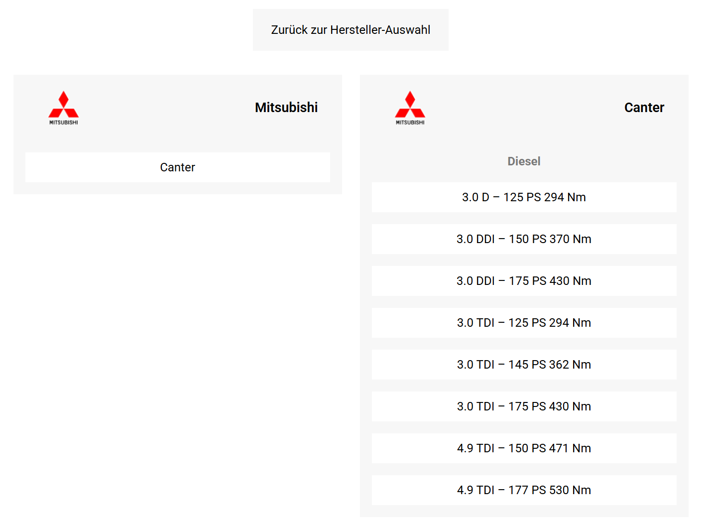 Ahora tiene toda una serie de motores Canter en su página web.